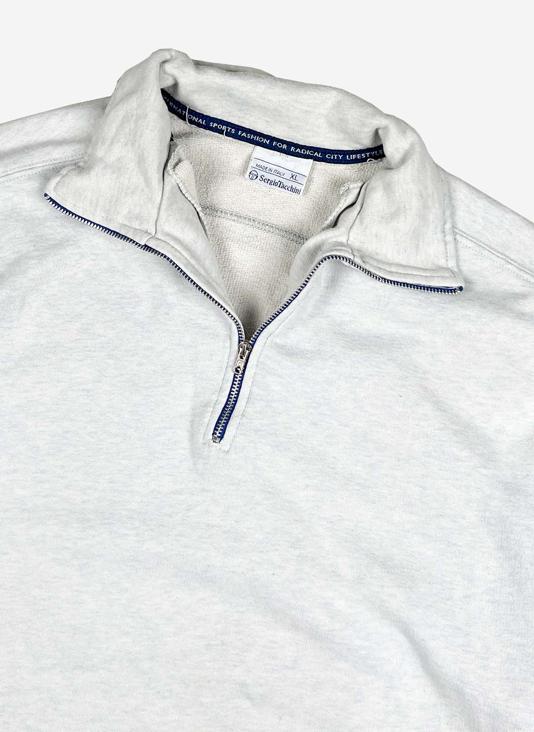 Vintage 90s Sergio Tacchini Half-Zip Sweater hellgrau